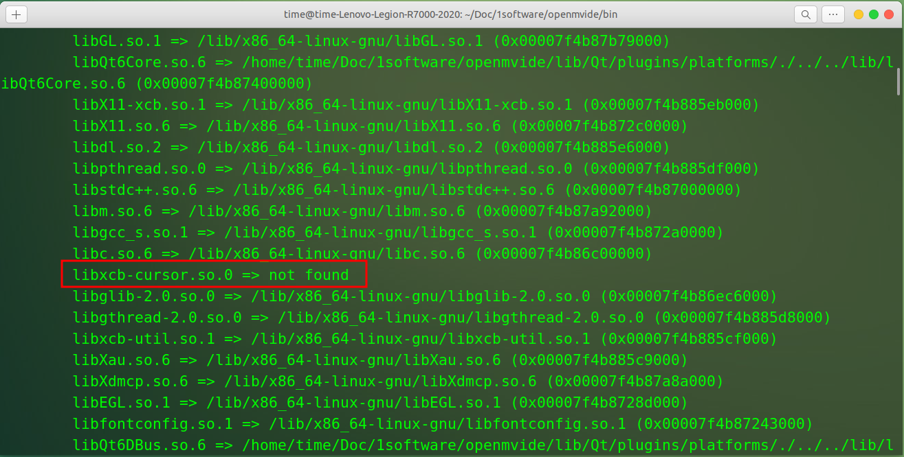 可以看到,某些共享库(如 libxcb-xxx.so)提示为 not found,说明这些库在系统中尚未安装;