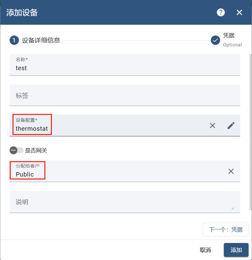 分配给客户,我选择了公开,这个决定了用户账户可以查看的设备;