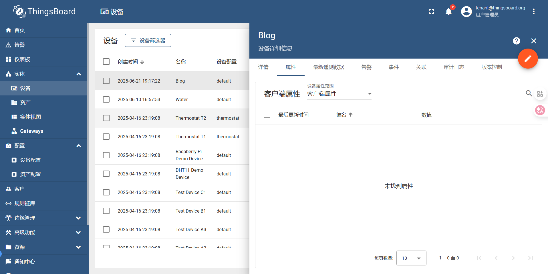 | 租户管理员 | tenant@thingsboard.org | tenant |