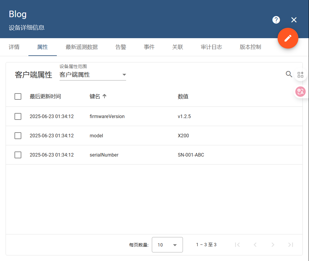 其中, firmwareVersion 和 serialNumber 是设备在 ThingsBoard 中配置的客户端属性;