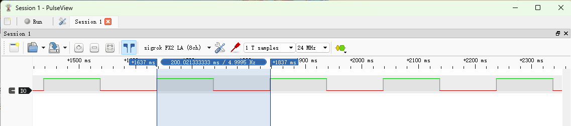 可以看到,PE3 引脚高电平+低电平的持续时间为200.021 ms,结合逻辑分析仪和定时器本身的误差,我们可以认为,这个延时是准确的。